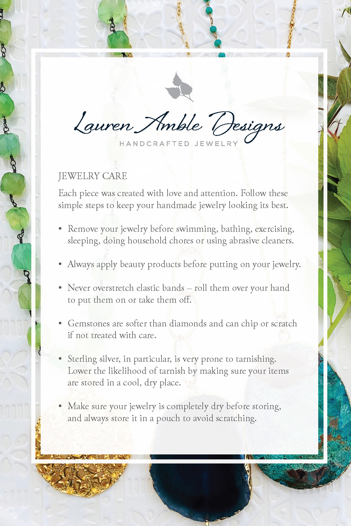 Lauren Amble Designs | Care Card